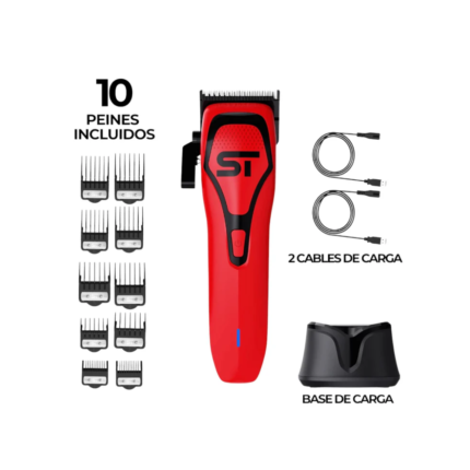 Incluye tres opciones de carga: directa con cable, base de carga y batería portátil recargable, lo que te permite mantenerla en funcionamiento incluso cuando estás fuera del salón o sin acceso a una toma de corriente. Esta versatilidad es ideal tanto para profesionales que se desplazan a domicilio como para quienes trabajan largas jornadas y no pueden detenerse por falta de energía.
