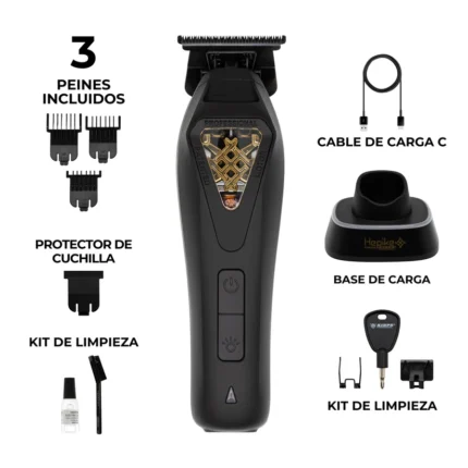 Su tapa con luz ultravioleta esteriliza automáticamente las cuchillas, manteniéndolas limpias y listas para cada cliente. Menos preocupaciones, más confianza.
