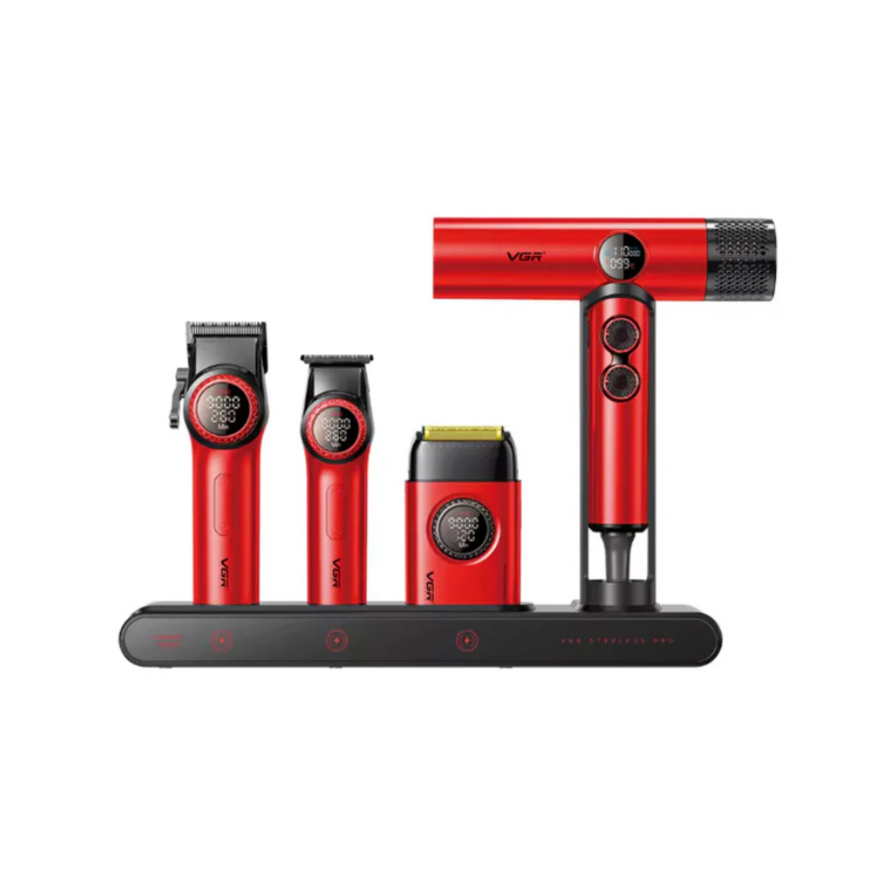 BARBER COMBO VGR ROJO CORTAPELO PATILLERA AFEITADORA Y SECADOR