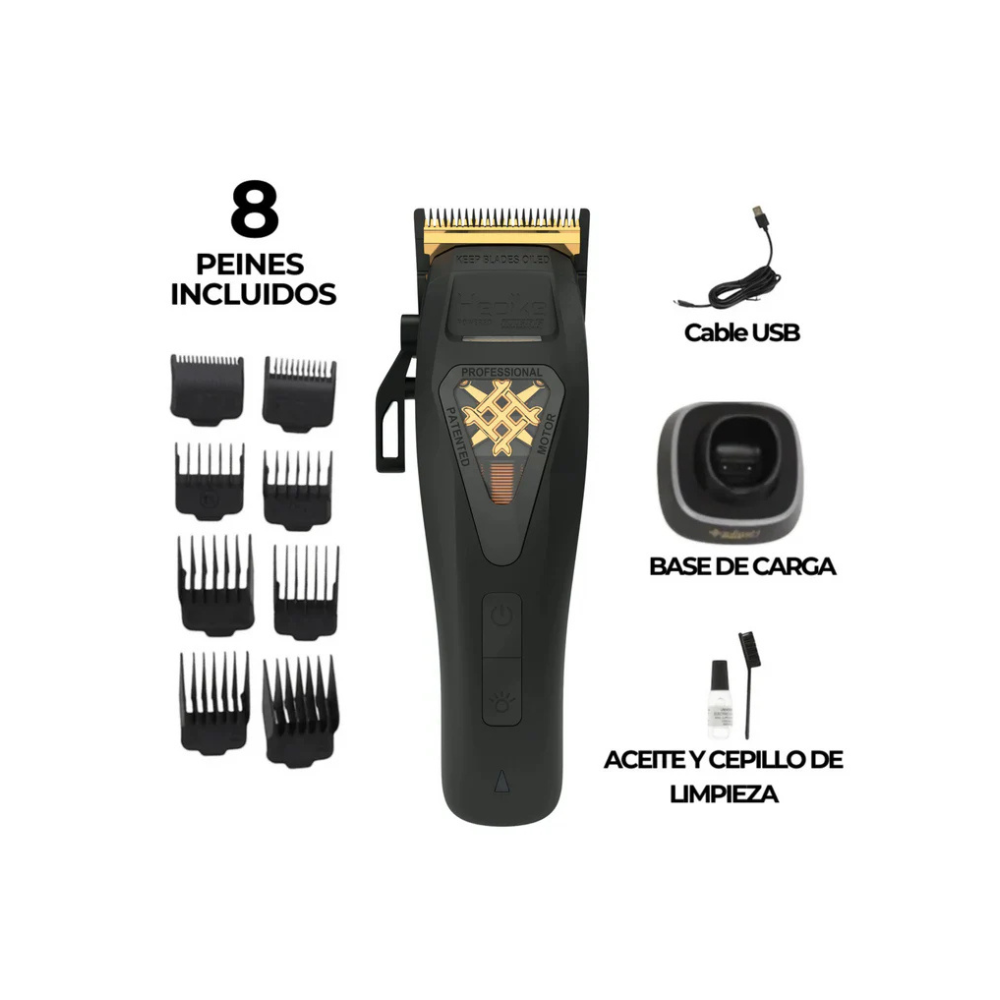 La Clipper Kiepe Hepike es una herramienta de peinado profesional de alto rendimiento diseñada con un impresionante motor vectorial de 10000 hasta 15000 RPM para una potencia de corte excepcional. Con cuchillas de acero de calidad profesional con un sistema de protección de la piel integrado, esta cortadora avanzada ofrece cortes precisos y eficientes de manera constante. El innovador sistema de protección magnética con 8 opciones de tamaño diferentes proporciona máxima versatilidad para varias longitudes de corte, mientras que la palanca de cuchilla ajustable permite capacidades de combinación perfectas.