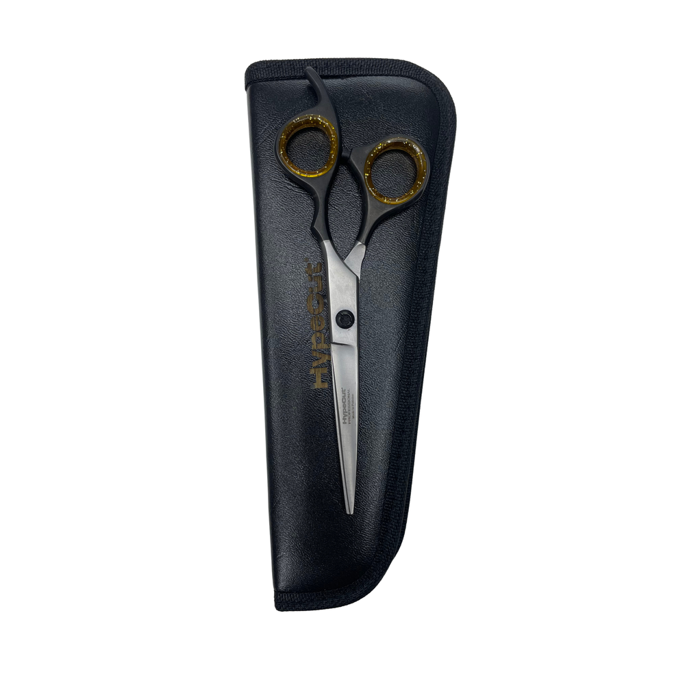 Estas tijeras profesionales de la marca Hypecut representan la elección ideal para el estilista que busca un equilibrio entre sobriedad, elegancia y alto rendimiento. A diferencia de los modelos más ornamentados, este diseño destaca por su acabado en negro mate en el mango, que contrasta limpiamente con el acero pulido de las hojas, ofreciendo una estética moderna, técnica y profundamente profesional.